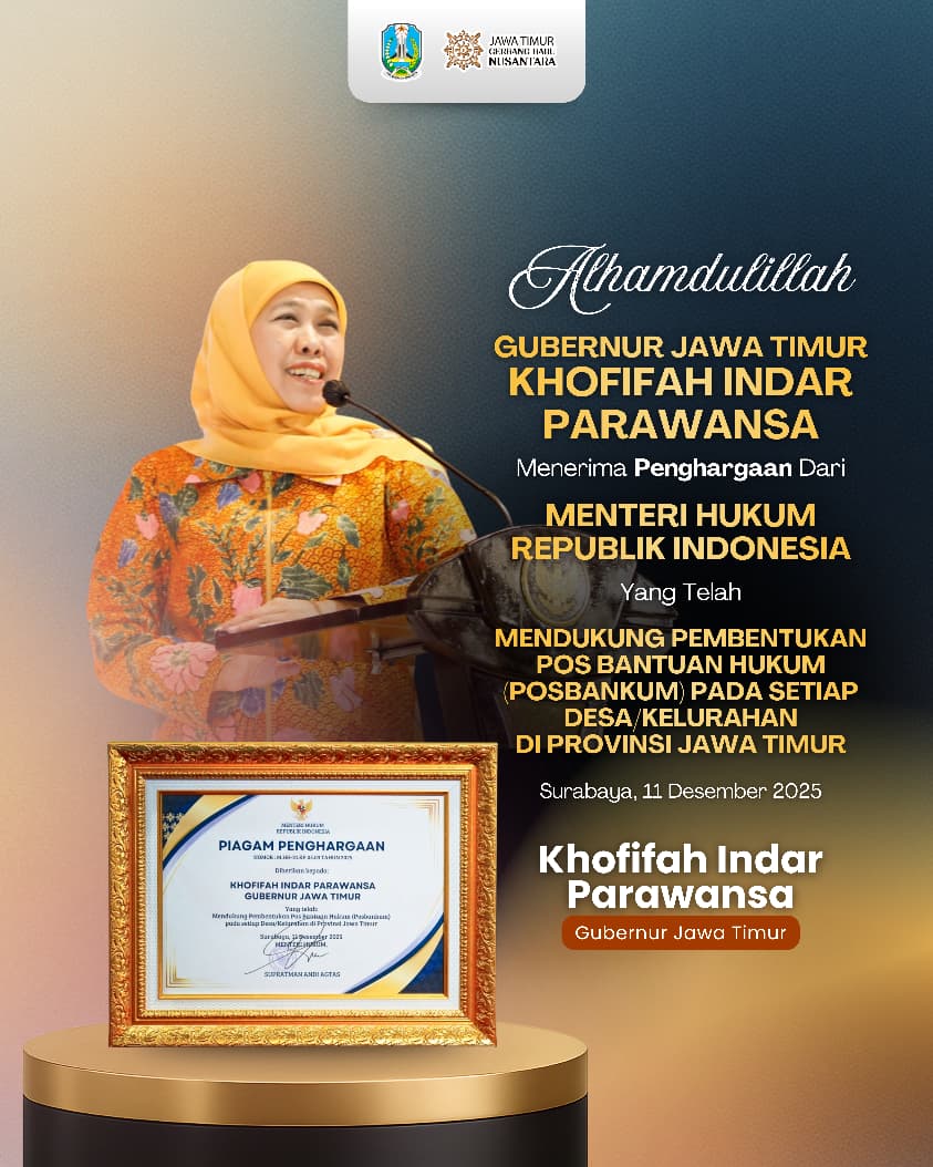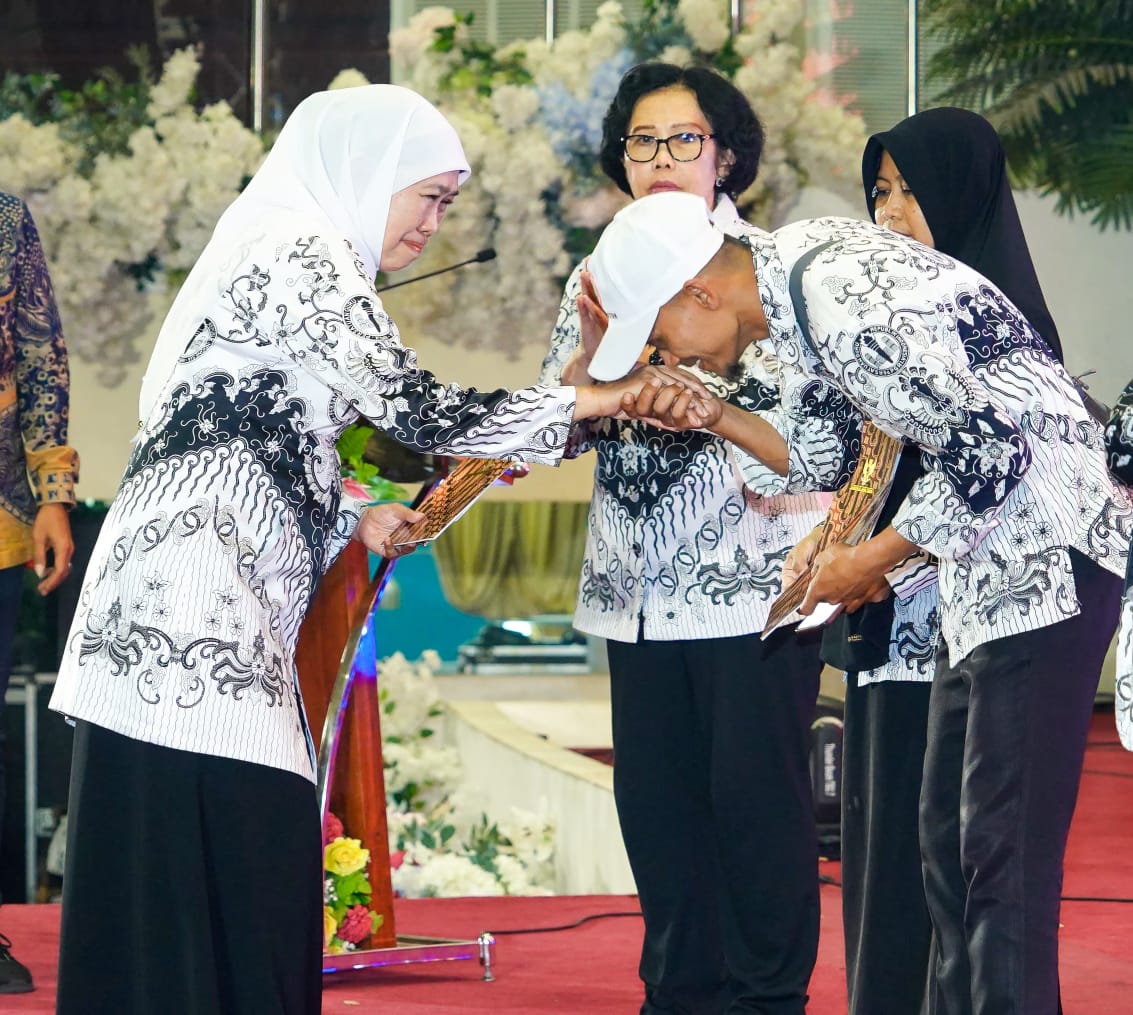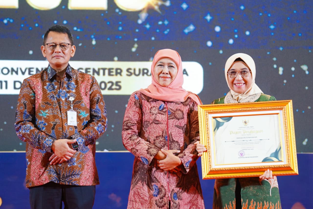 SURABAYA, 12 DESEMBER 2025 – Gubernur Jawa Timur Khofifah Indar Parawansa menyerahkan Penghargaan Pelayanan Publik, Akuntabili