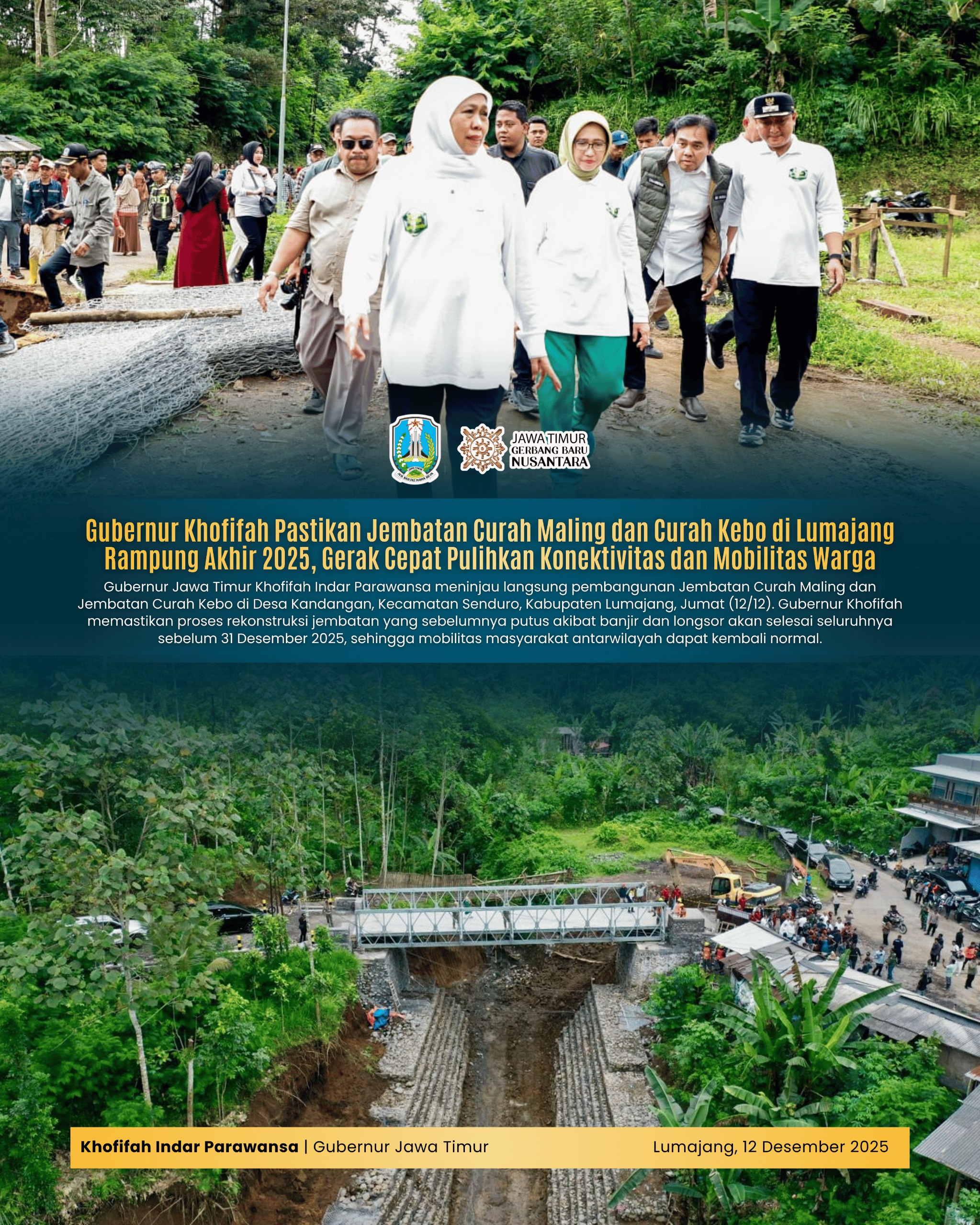 Gubernur Khofifah Pastikan Dua Jembatan di Kecamatan Senduro – Lumajang Selesai Akhir Tahun, Pulihkan Konektivitas Bagi Masyarakat